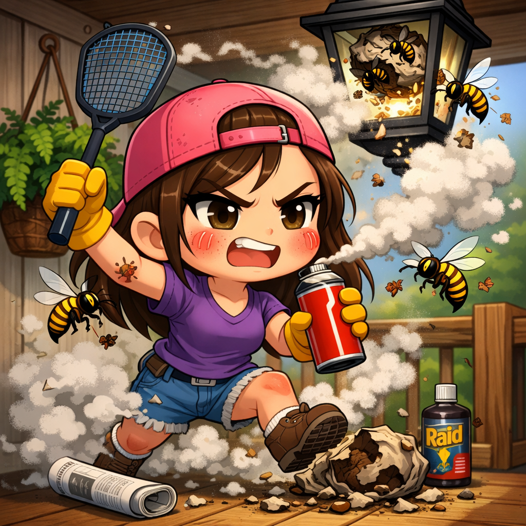 The nest was destroyed. The wasps were defeated. My porch was reclaimed in the name of peace and slightly swollen vengeance.